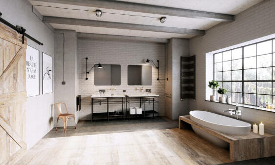 Loftowe i industrialne wnętrza cieszą się niesłabnącą popularnością, zapewne ze względu na swój niebanalny wystrój i redukcję wyposażenia do niezbędnego minimum. Funkcjonalne sprzęty posiadają często nowoczesną, geometryczną formę. W pomieszczeniach, podobnie jak na zaprezentowanej aranżacji, dominują odcienie beżu, bieli, szarości i czerni. Szczególnie widoczne są detale w czerni – ceramika, elementy lamp i obramowanie luster oraz piękna armatura z kolekcji Stratos Black. Wnętrze, które na pierwszy rzut oka wydaje się być surowe posiada niepowtarzalny styl, kusi atrakcyjnym wyglądem, oferuje wygodę. Dwie minimalistyczne umywalki w połączeniu z gustownymi nablatowymi bateriami oraz lustrami o delikatnie zaokrąglonej linii tworzą komfortową przestrzeń pielęgnacji. Umiejscowiona naprzeciw obszerna strefa prysznica oddzielona jedynie szklaną ścianką zachęca do wspólnych kąpieli.